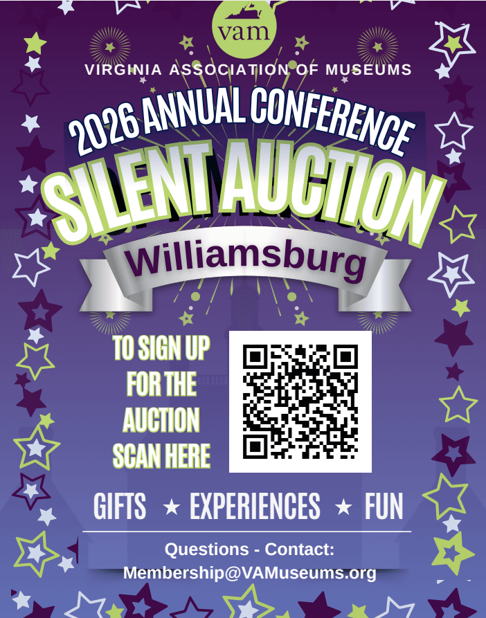 Your items and experiences will be featured in the exhibit hall during the 2026 VAM Annual Conference in Williamsburg, Virginia, March 14-17 2026.